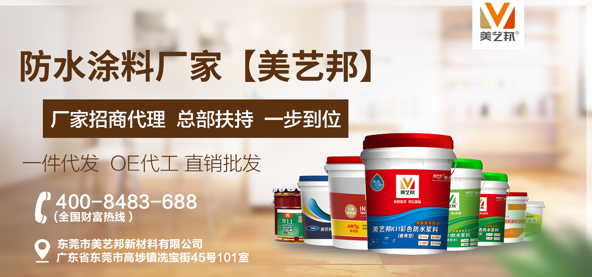 東莞市美藝邦新材料有限公司,是一家建筑防水行業(yè)集研發(fā)、設(shè)計(jì)、生產(chǎn)、銷售于一體的高新技術(shù)企業(yè)。基于東莞生產(chǎn)基地,開(kāi)展全國(guó)建筑輔材加盟招商代理批發(fā)業(yè)務(wù)。 我司采用國(guó)內(nèi)外先進(jìn)的科學(xué)技術(shù)的同時(shí),緊跟國(guó)際發(fā)展趨勢(shì)及結(jié)合國(guó)內(nèi)市場(chǎng)特點(diǎn),自主研發(fā)出健康環(huán)保型產(chǎn)品,其中包含防水涂料(K11彩色通用型防水涂料、K12彩色柔韌型防水涂料、JS聚合物防水涂料等等),瓷磚背膠(加強(qiáng)型瓷磚背膠、大理石瓷磚背膠、速干型瓷磚背...
